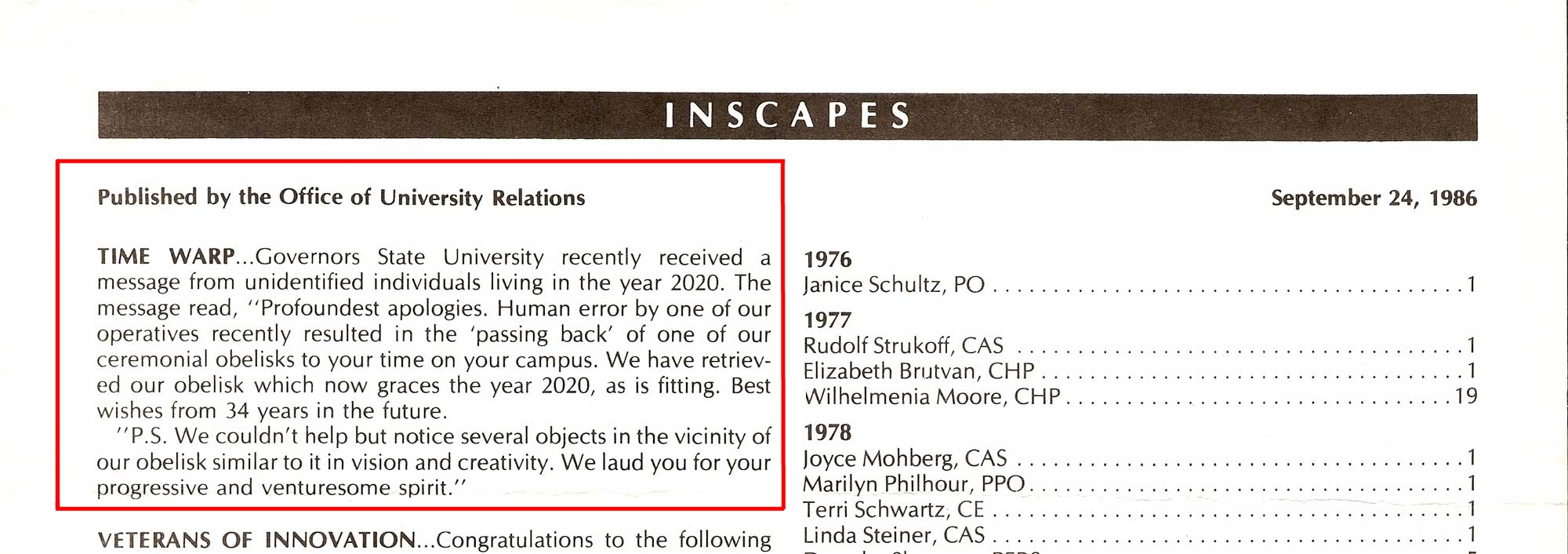 State University Inscapes weekly reader it was gone.